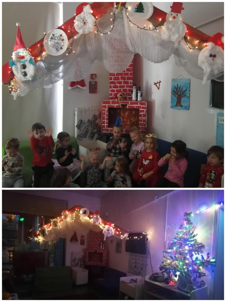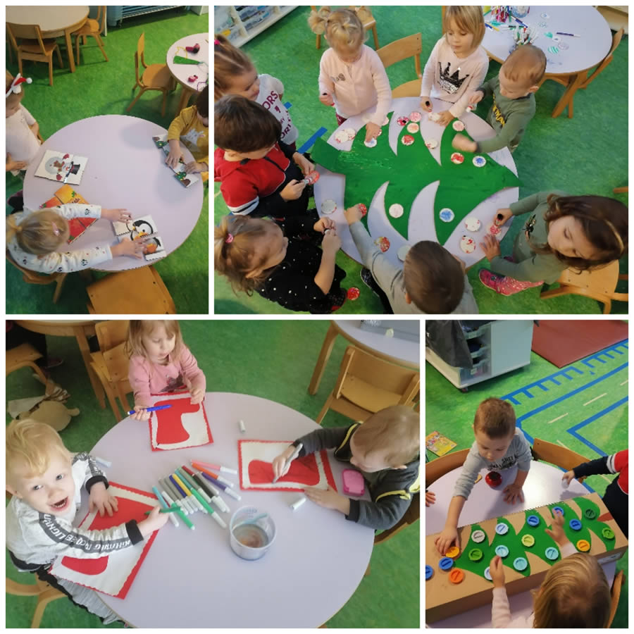 Tako se i u našoj skupini provodilo niz aktivnosti: govornih, likovnih, istraživačkih, scenskih, glazbenih i sl. kojima smo djeci pokušali dočarati božićne blagdane. Izradili smo adventski vijenac te smo svaki ponedjeljak u Došašću palili svjećicu; izrađivali smo i ukrašavali motive koji su vezani za blagdane poput bora, kuglica, zvončića i sl.; listali smo i proučavali prigodne slikovnice; igrali smo razne igre s blagdanskom tematikom: pokrivaljka “Blagdani”, umetaljke i slagalice “Blagdanski motivi”, istraživačke igre “Kitimo bor”, “Snjegović”.