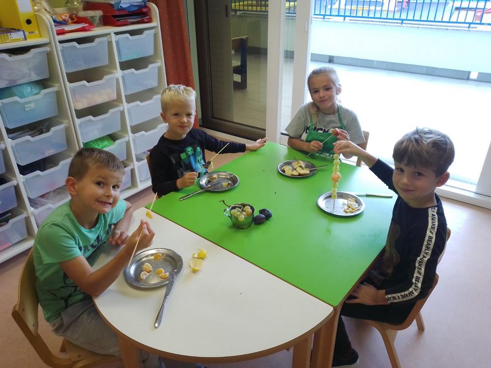 U Dječjem tjednu, čija je tema bila voće i povrće, radili smo voćnu salatu i ražnjiće od voća. Sami smo rezali nožem, pripremali i na kraju pojeli. Također smo koristili sokovnik te napravili sokove od raznog voća. Najukusniji napitak bio nam je od banane.