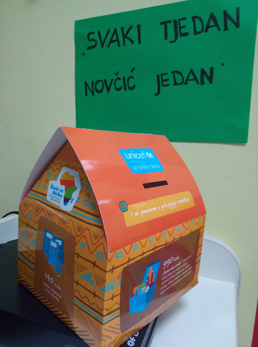 Pod motom skupine „Svaki tjedan – novčić jedan“ sakupljamo kune u našu kasicu, čime će se omogućiti kupovina školskih potrepština djeci Madagaskara..