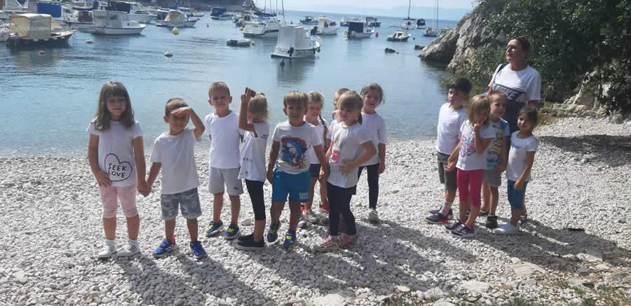 Vrijedni smo od samog početka pa smo već puno toga obilježili: Hrvatski Olimpijski dan šetnjom do mora u bijelim majicama, prvi dan jeseni, Dane kruha…. Svakodnevno boravimo na vanjskom prostoru. Igramo se na dvorištu, a često šetamo do mora ili do obližnjeg parka u Žuknici. Započeli smo s programom sporta pa sad dva puta tjedno vježbamo u dvorani vrtića. Proslavili smo i mnoge rođendane, uvijek u veselom raspoloženju.