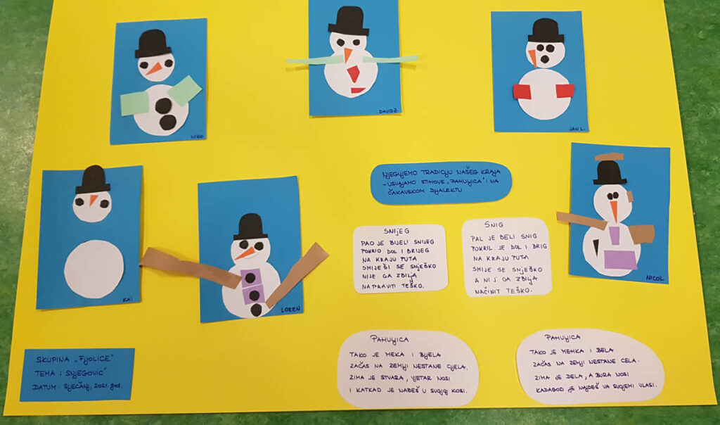 - usvajanje stihova “Snijeg” i “Pahuljica”, a stihove smo usvajali i na čakavskom jeziku