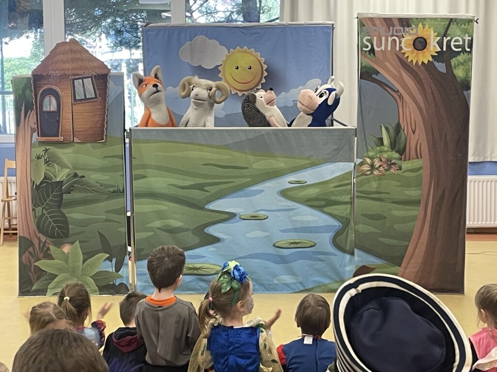 Skupine Cukrići, Loptice i Pešekani pogledali su edukacijski lutkarski mjuzikl za djecu “Kako nastaje prijateljstvo ?”. U utorak, 17. veljače 2026.g. u dvorani “Zlatne ribice” ugostili smo umjetničku organizaciju iz Splita Studio SUNCOKRET koju je osnovao Duško Mucalo, ujedno autor priče, stihova i glazbe ovog lutkarskog mjuzikla.