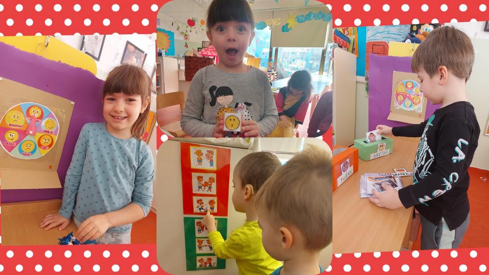 Ali, bilo je i onih dana kada smo se ustali na “krivu nogu” pa smo bili žalosni, ljuti, potišteni, ponekada i bijesni. Upravo iz tih razloga oformili smo centar “Emocija” s ciljem da se naučimo nositi i s neugodnim osjećajima te da ih lakše prebrodimo. Centar sadrži didaktička pomagala i materijale koji svakodnevno omogućuju djeci da prepoznaju, imenuju, prihvate i razlikuju kako vlastite emocije tako i emocije svojih prijatelja. Izradili smo i našu veliku kutiju osjećaja koja nam uvelike pomaže u shvaćanju situacija svakoga dana koje nas dovode do različitog emocionalnog stanja. Još uvijek učimo da treba razgovarati o tome što nas veseli, što nas čini tužnima, ili zbog čega se osjećamo krivima.