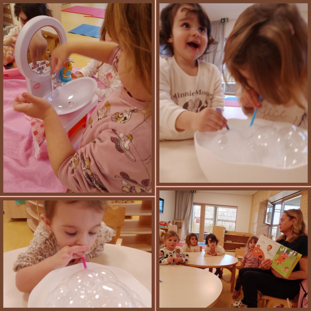 Također smo kroz simboličku igru kupali bebe (lutke) i razgovarali o brizi za tijelo i čistoću. Aktivnosti smo upotpunili čitanjem kratkih priča, potičući pažnju, slušanje i razvijanje govora..