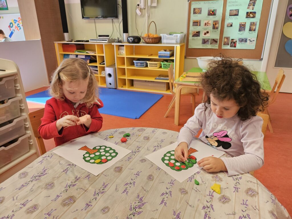 Kroz ove mjesece upoznali smo se s promjenama u prirodi koje donosi jesen. Sakupljene jesenske plodove istraživali smo, imenovali i koristila za kreativne aktivnosti. Puno smo pjevali i usvajali nove recitacije s pokretom: Patuljak, Kiša, Lutkica… Okušali smo se i u nekim novim igrama i vještinama, puno režemo škaricama, slažemo slagalice, igramo memori, nižemo perlice. Vrlo rado idemo u dvoranu i vježbamo, prelazimo poligone, igramo natjecateljske igre…