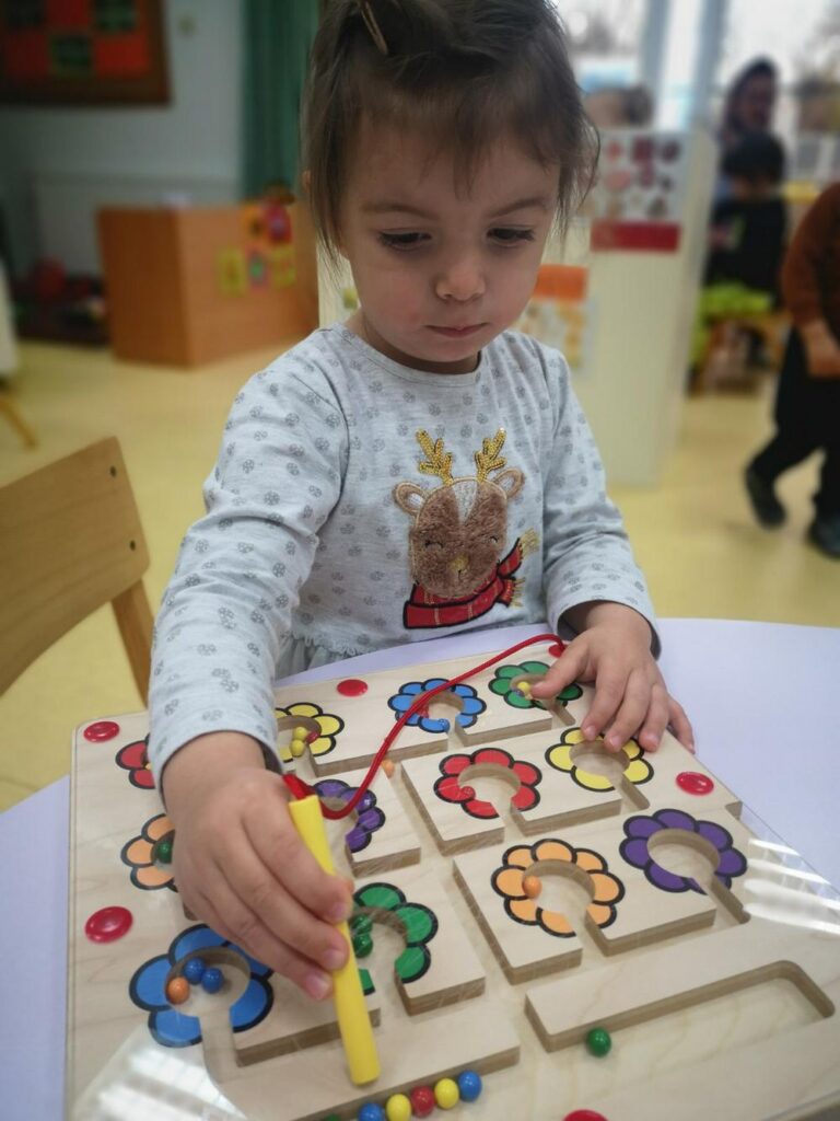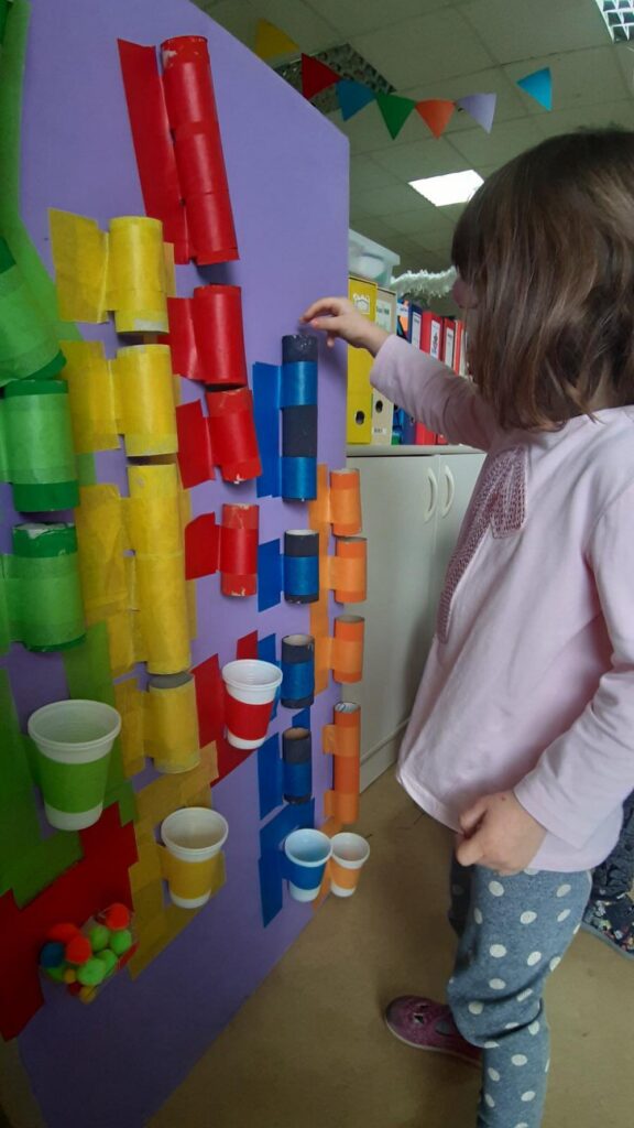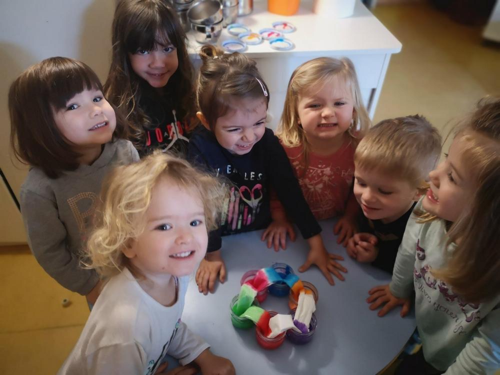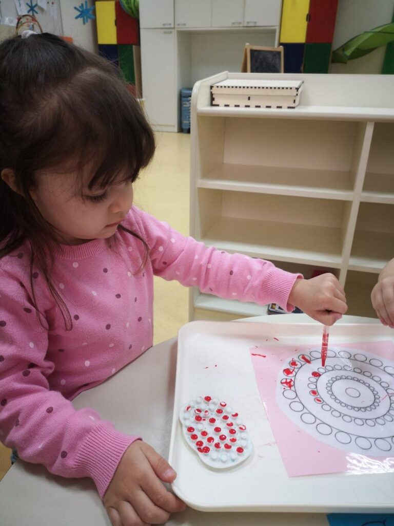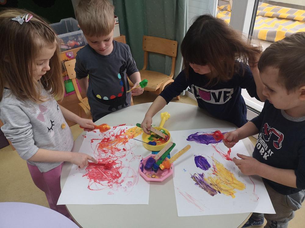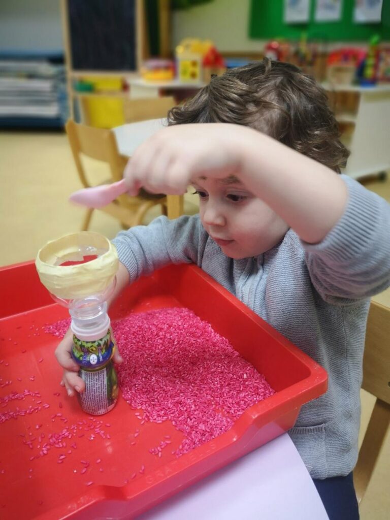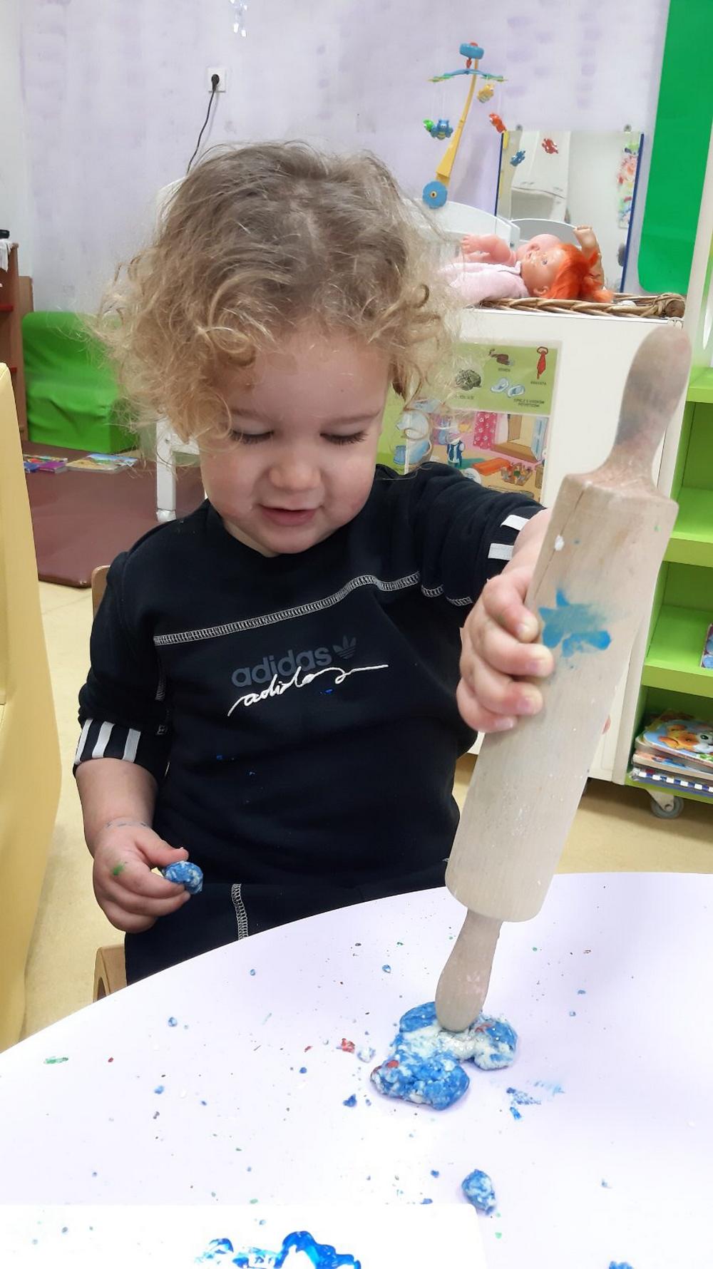 Didaktičkim igrama (senzorne boce, eksperimenti sa ledom i vodom) poticali smo mirne istraživačke igre, igre s pravilima pri čemu se vježba i strpljenje, a upravo te igre pobudili smo veliki interes u Pačićima. Istraživali smo obojanom rižom koja je poslužila kao izvrstan materijal za strpljivo presipavanje, punjenje i pražnjenje posudica, a raznobojna pašta bila je poticaj za igru nizanja i razvrstavanja. Vizualnu percepciju, ali i taktilno iskustvo potakli smo modeliranjem domaćim plastelinom u osnovnim bojama.
