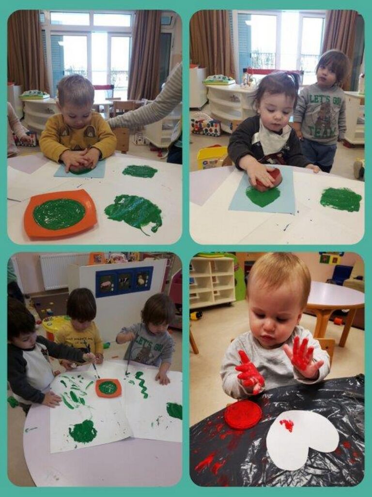 Trenutno nas najviše zaokuplja igra s bojama koje su svuda oko nas. Promatramo i prepoznajemo ih, mijesimo tijesto raznih boja, bojamo razne površine, “trackamo i packamo”, opipavamo razne materijale, spajamo iste boje, a neki od nas ih i imenuju.