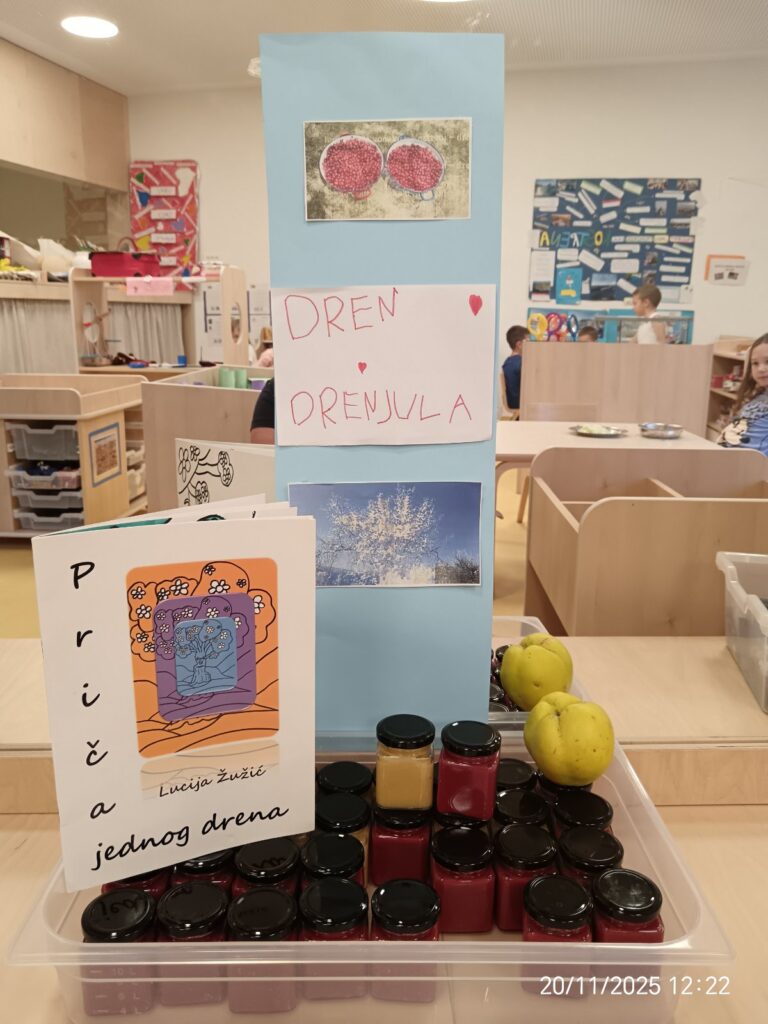 Danas su “Iskrice” naučile što je drenjula/dren. Gđa. Željka Egredžija iz OPG-a “E-KOS Egredžija” upoznala nas je sa ovim voćem koje obiluje vitaminom C, kalcijem i raznim drugim mineralima, kao i mnogobrojnim antioksidansima, stoga se zbog iznimno visokih nutritivnih vrijednosti smatra supervoćem. Dren ima antioksidativno, protuupalno i antitumorsko djelovanje.